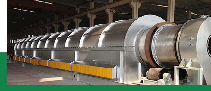 濕物料從干燥機一端投入后,在內筒均布的抄板器翻動下,物料在干燥器內均勻分布與分散,并與并流(逆流)的熱空氣充分接觸,加快了干燥傳熱,傳至推動力。在干燥過程中,物料在帶有傾斜度的抄板和熱氣流的作用下,可調控地運動至干燥機另一段星形卸料閥排出成品。